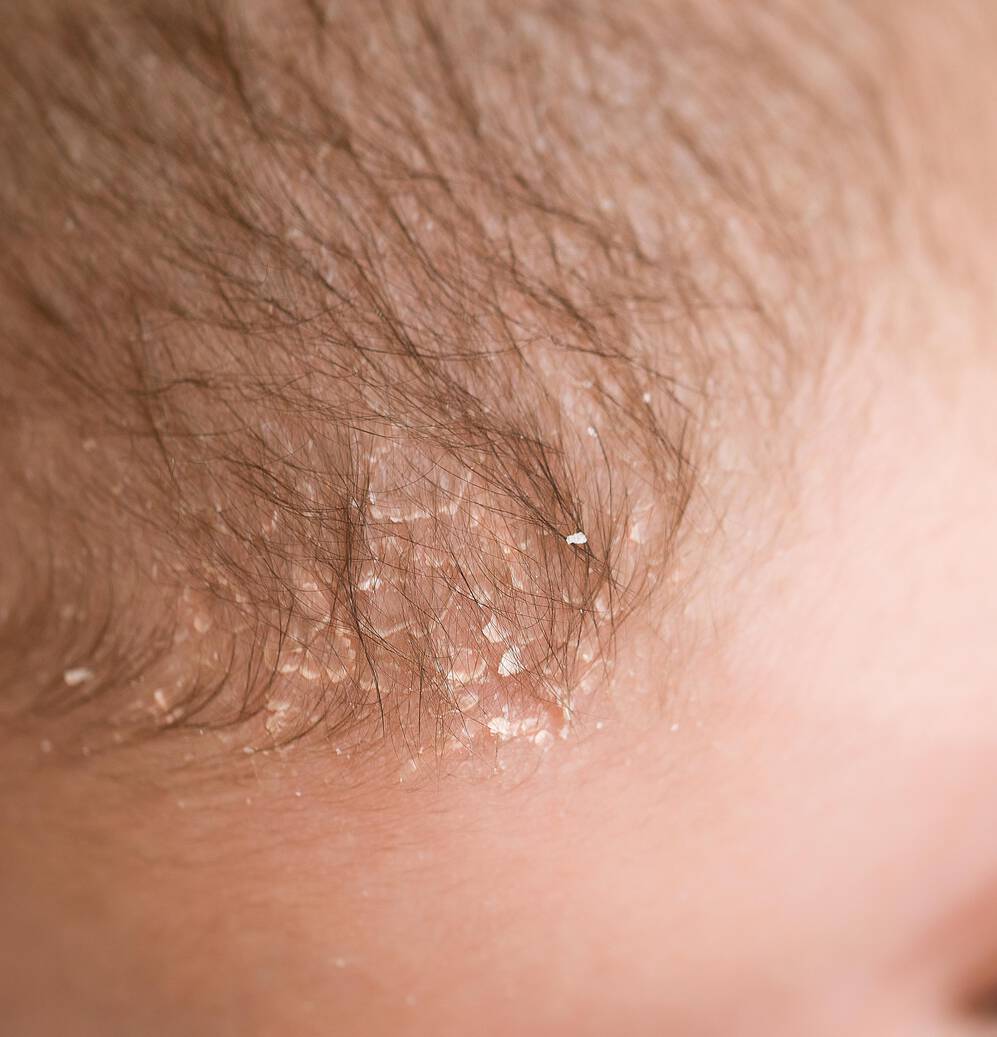 Sachez également qu’il existe une forme particulière d’eczéma qui tend à se développer principalement sur le cuir chevelu : la dermite séborrhéique ou dermatite séborrhéique. Si ses origines exactes demeurent floues, elles sont liées à une prolifération de Malassezia, une levure naturellement présente dans la peau. Le stress, les variations hormonales, la prise de certains médicaments et les températures ambiantes très froides sont autant de déclencheurs fréquents de dermite séborrhéique1.