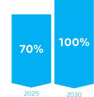 En plus de concevoir des emballages plus respectueux de la planète, nous visons à remplacer le plastique vierge par du plastique recyclé dans tous nos produits qui en contiennent. Notre objectif est d'atteindre 100 % de plastique recyclé d'ici 2030.